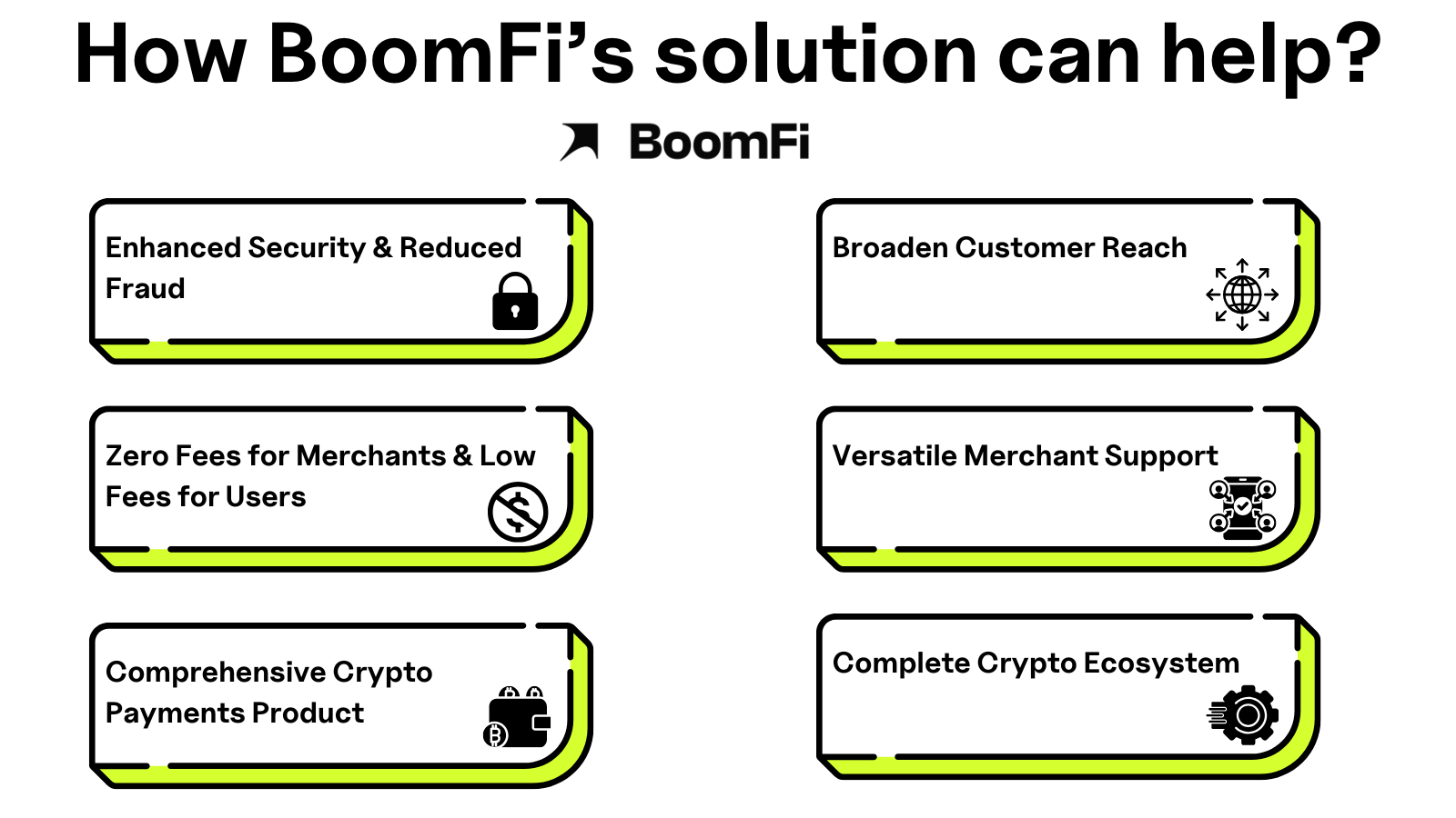 Understanding the diverse needs of businesses, BoomFi accommodates a broad spectrum of merchants, including those categorized as low, medium, and high-risk. This versatility ensures that a wide array of business types—from e-commerce startups to established enterprises—can find tailored solutions that meet their payment processing requirements.
