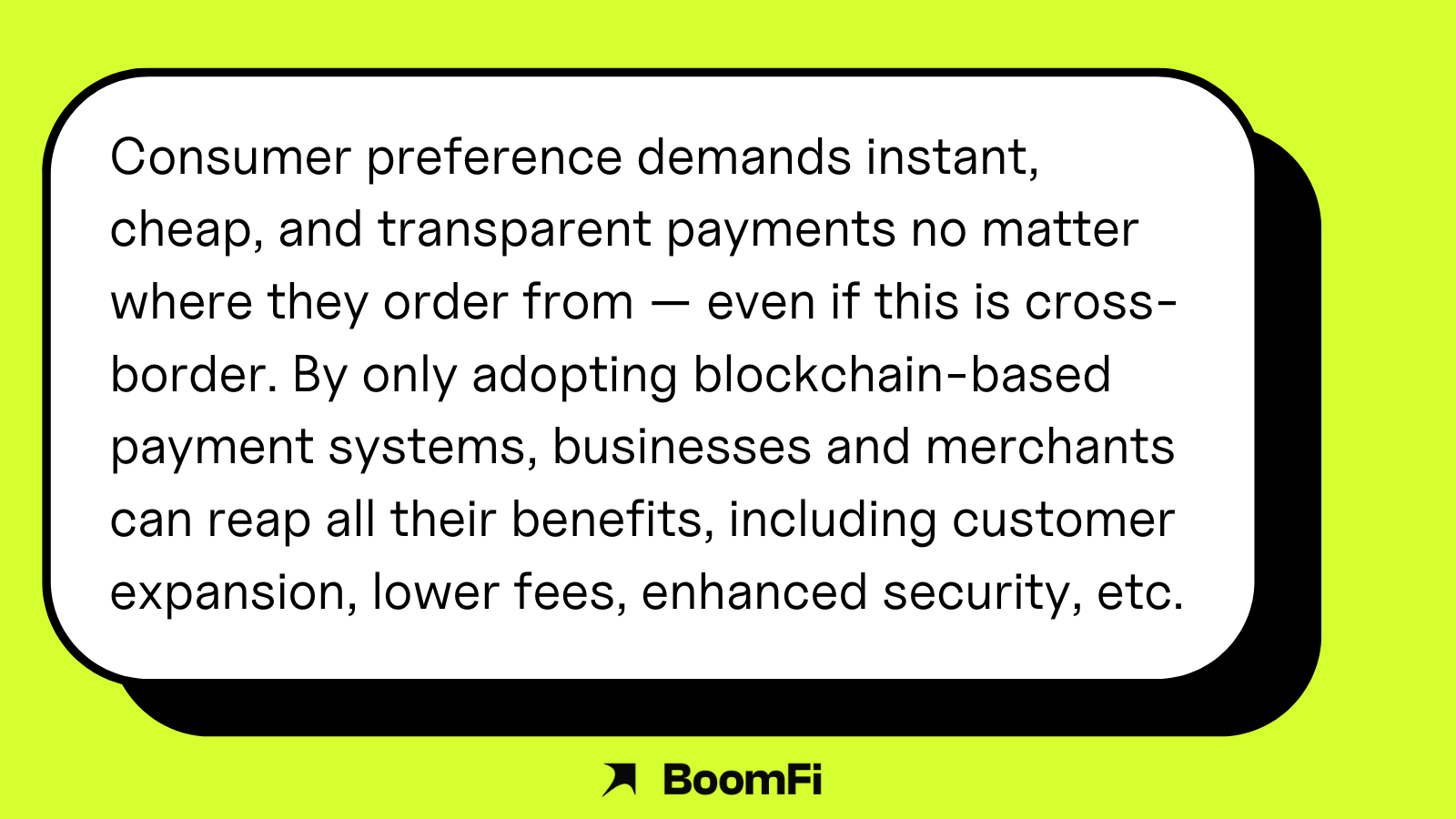 This changing payment landscape, coupled with add-on pressure on the global payment system, poses a key challenge for Payment Service Providers (PSPs): how to effectively adapt and expand their service offerings to merchants. The article will shed light on how PSPs can partner with crypto payment service providers like BoomFi to reap benefits and effectively position for the future of payment. At the end, merchants and businesses can also find how easy and seamless it is to start accepting crypto payments with BoomFi.